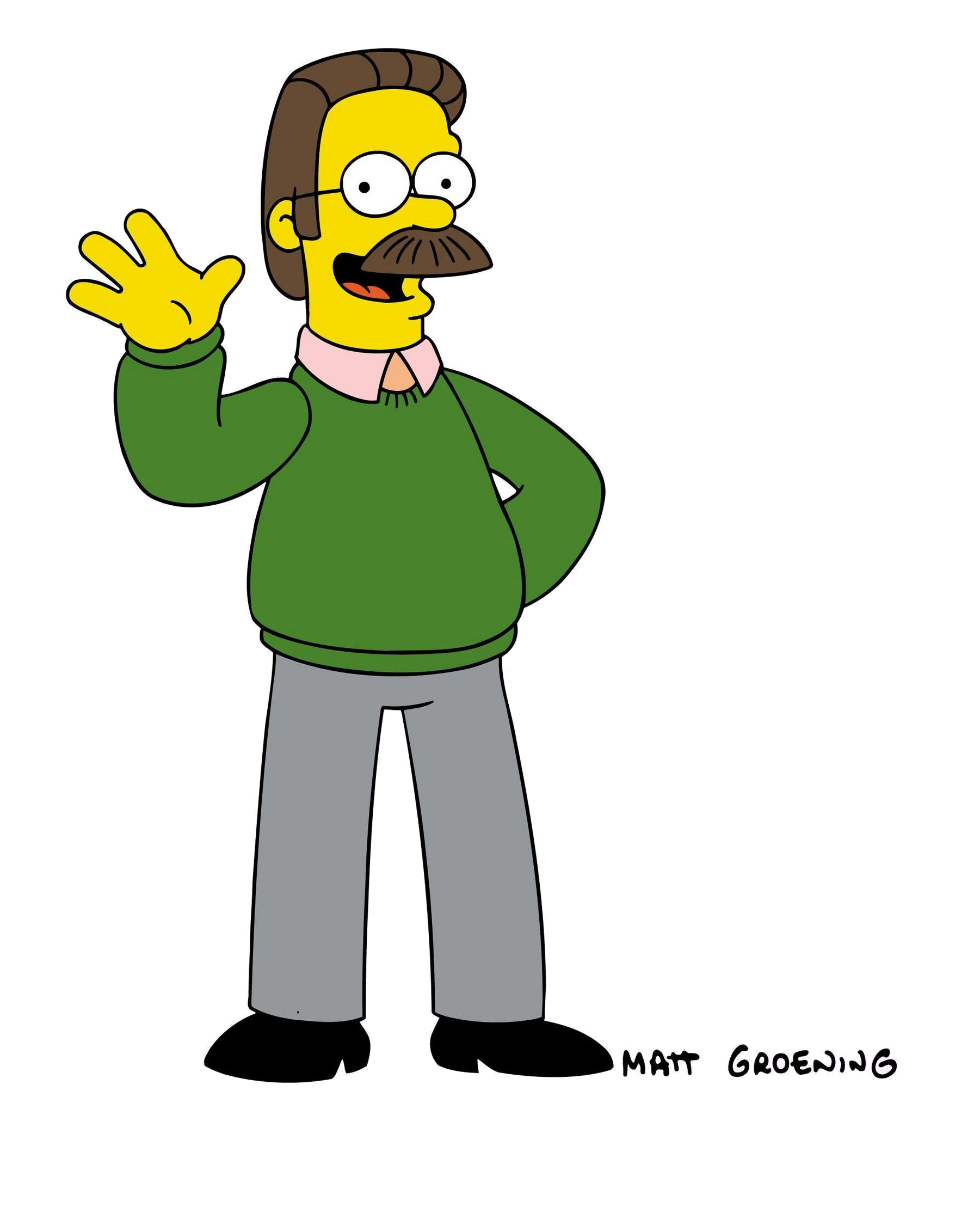 Ned es el vecino de junto de la familia Simpson. Normalmente es odiado por Homer Simpson, que lo define como peor que Frankenstein y el Dr. No. Es un cristiano devoto y es el más amigable y compasivo de todos los habitantes de Springfield, considerado normalmente como uno de los pilares de su comunidad.